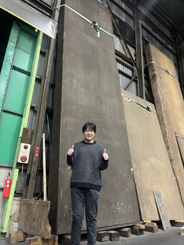 その結果、長さ7メートル、幅2メートル、厚さ40センチという圧巻の杢盤が誕生しました。