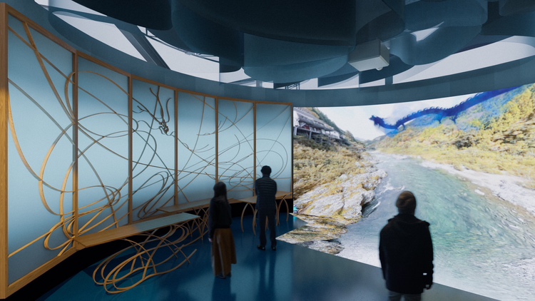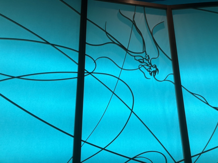 徳島館の象徴的なデザインである“龍”をイメージし、厳選した桧材を用いて制作。