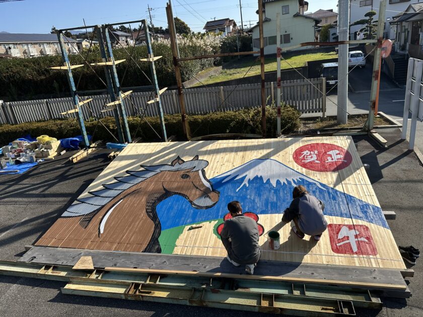 雄大な富士山と力強い干支をモチーフにした装飾には、「一年の安全」と「さらなる飛躍」への願いが込められています。